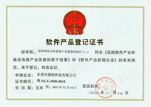 ??????? 2008年12月31日,本公司自主研發(fā)的網(wǎng)商寶在線式軟件獲得國家《軟件產(chǎn)品登記證書》,標(biāo)志著捷聯(lián)科技在線軟件產(chǎn)品獲得國家認(rèn)定。同時(shí),也是捷聯(lián)科技在2008年度相繼獲得“國家版權(quán)局著作權(quán)登記”、“東莞市專利培訓(xùn)企業(yè)”、“東莞市重點(diǎn)中小型企業(yè)”后的又一項(xiàng)榮譽(yù)與資質(zhì)。體現(xiàn)了捷聯(lián)科技在行業(yè)當(dāng)中領(lǐng)先的創(chuàng)新能力。