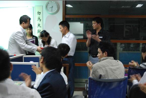 修總回顧了總經(jīng)辦3月的工作情況,對全體同仁們的工作給予了肯定,并表示下個月會加大對銷售們的關(guān)注和支持力度,并在會議上親自頒發(fā)了公司月度大獎,并親切的給獲獎?wù)哳C獎并留影.經(jīng)過一個月的辛勤勞動,我們辛勤的汗水最終于換來成功的收獲.東莞總公司月度目標達成率為80%以上.在換了新辦公地點的環(huán)境下,還能獲得如此成績,真是可喜可賀.